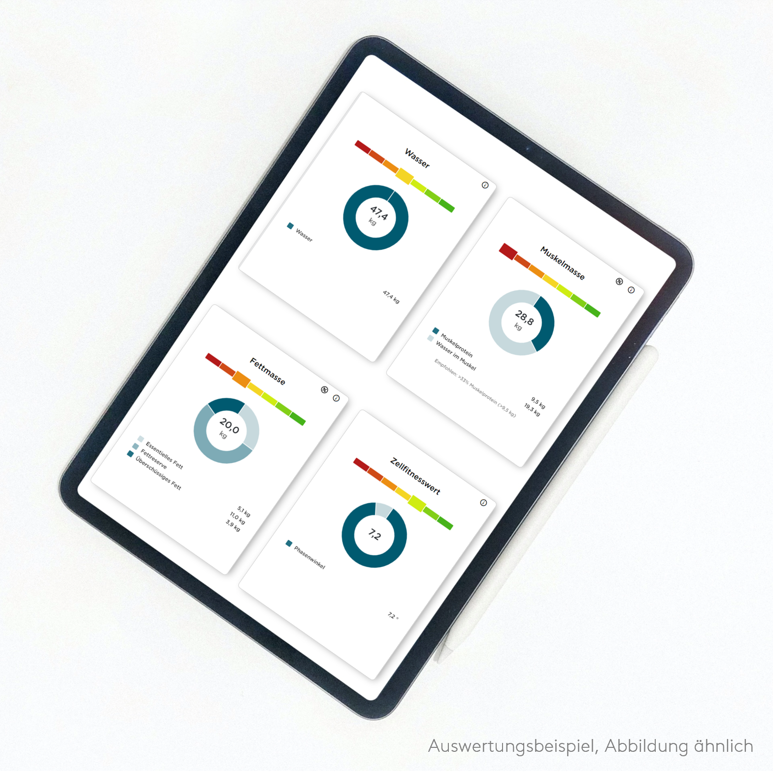 • Analyse von Körperfett, Körperwasser, Muskelmasse uvm.