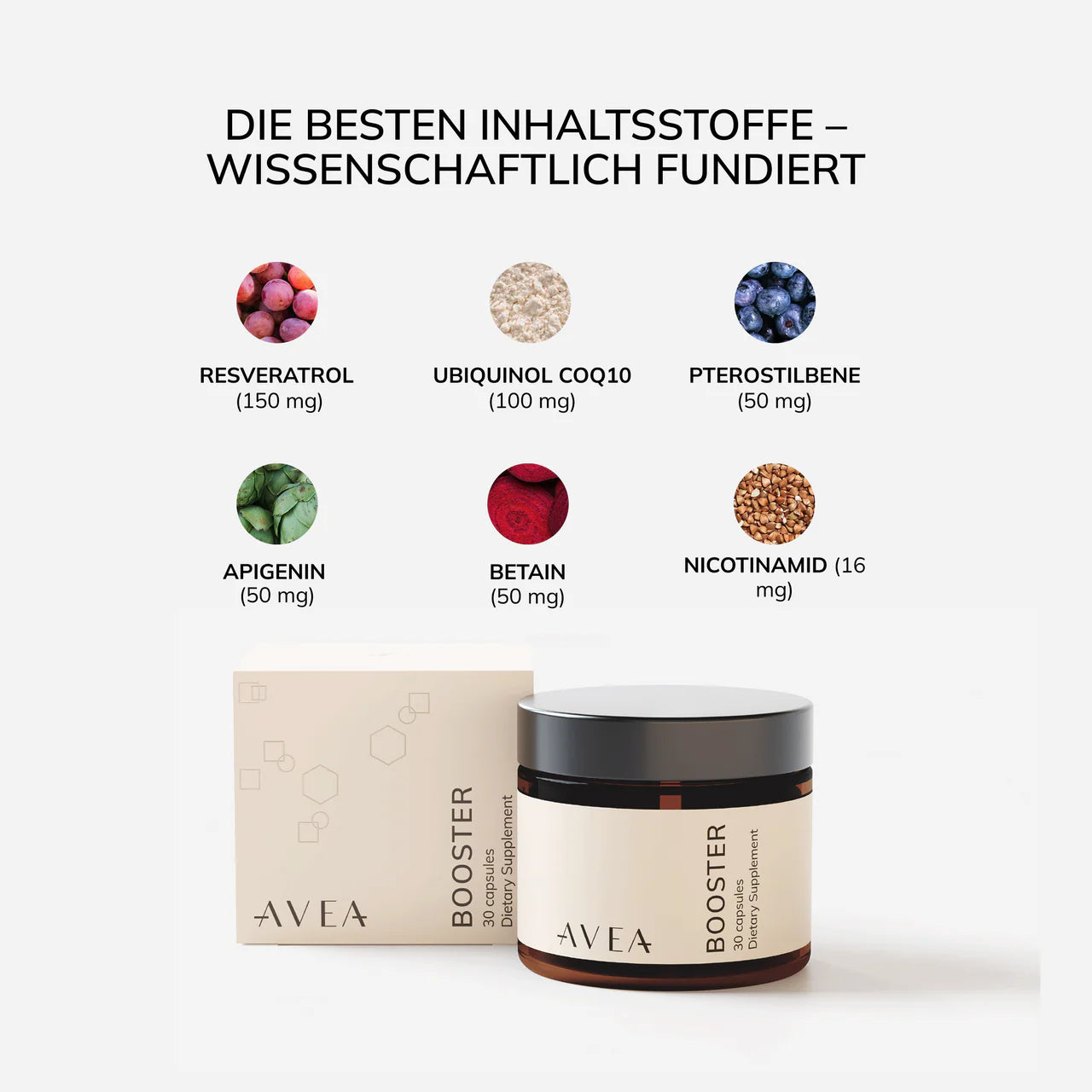 Der Booster kombiniert sechs Antioxidantien, die vor freien Radikalen schützen und Ihrem Stoffwechsel helfen, effizienter zu arbeiten. In Kombination mit einem NAD+-Vorläufer verbessert es die anhaltende Energie weiter.